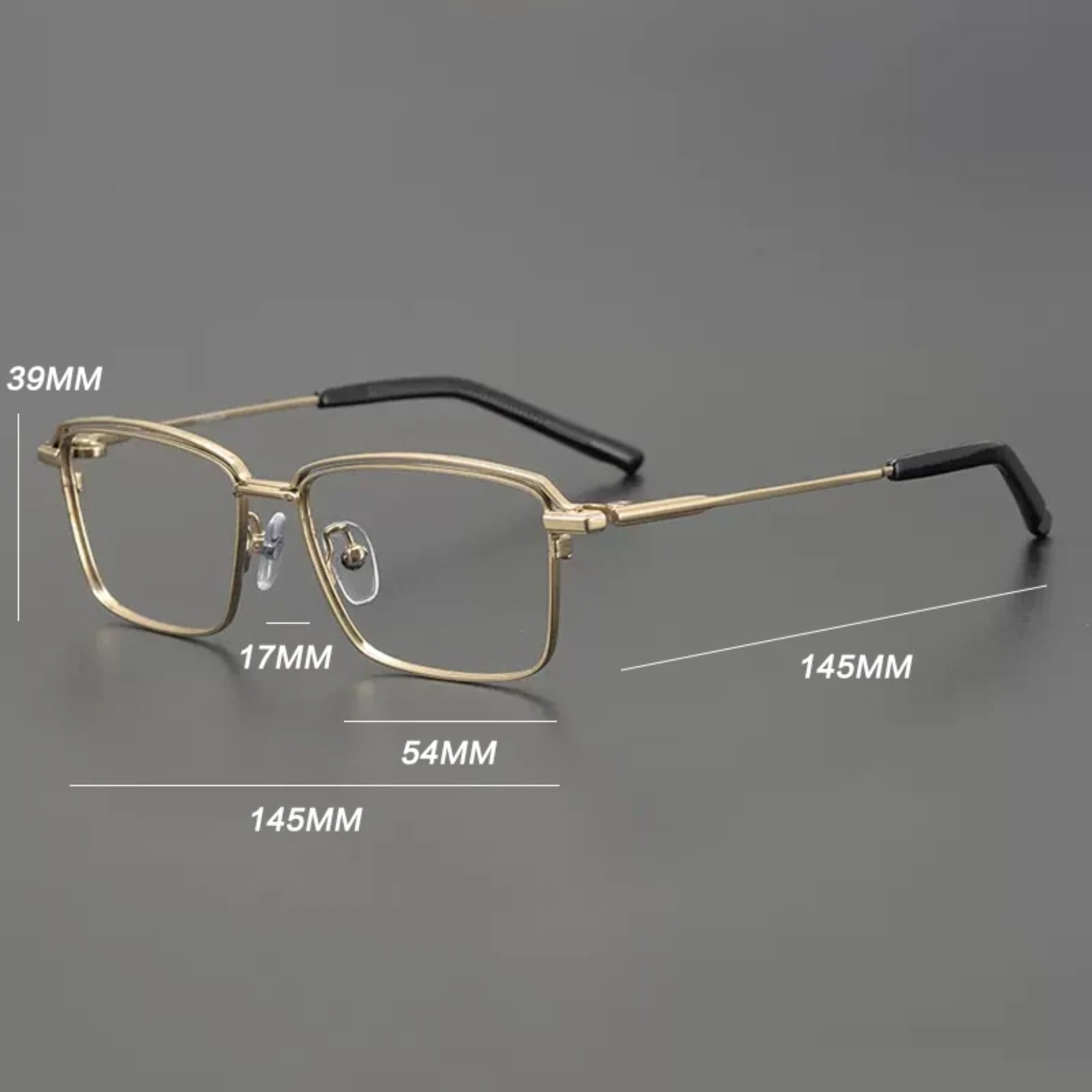 A clean square silhouette with slim titanium lines, giving this frame a sharper and more refined look than heavier full-rim optical styles.